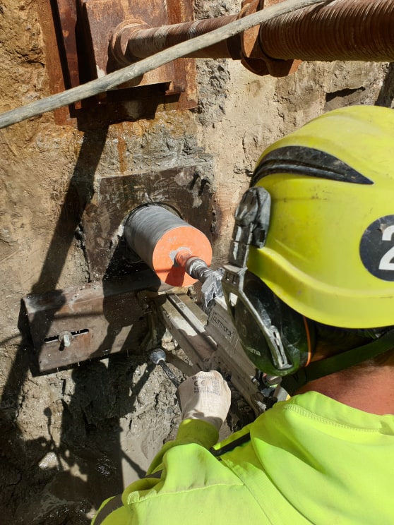 Основные задачи по алмазному бурению – отверстия в буронабивных сваях строящейся станции Курская, Московской железной дороги и бурение фундаментов в Москва Сити. На обоих объектах бурили под геологию для усиления грунта. Отверстия Ф200-225мм. глубиной 1-1,2 метра под углом.