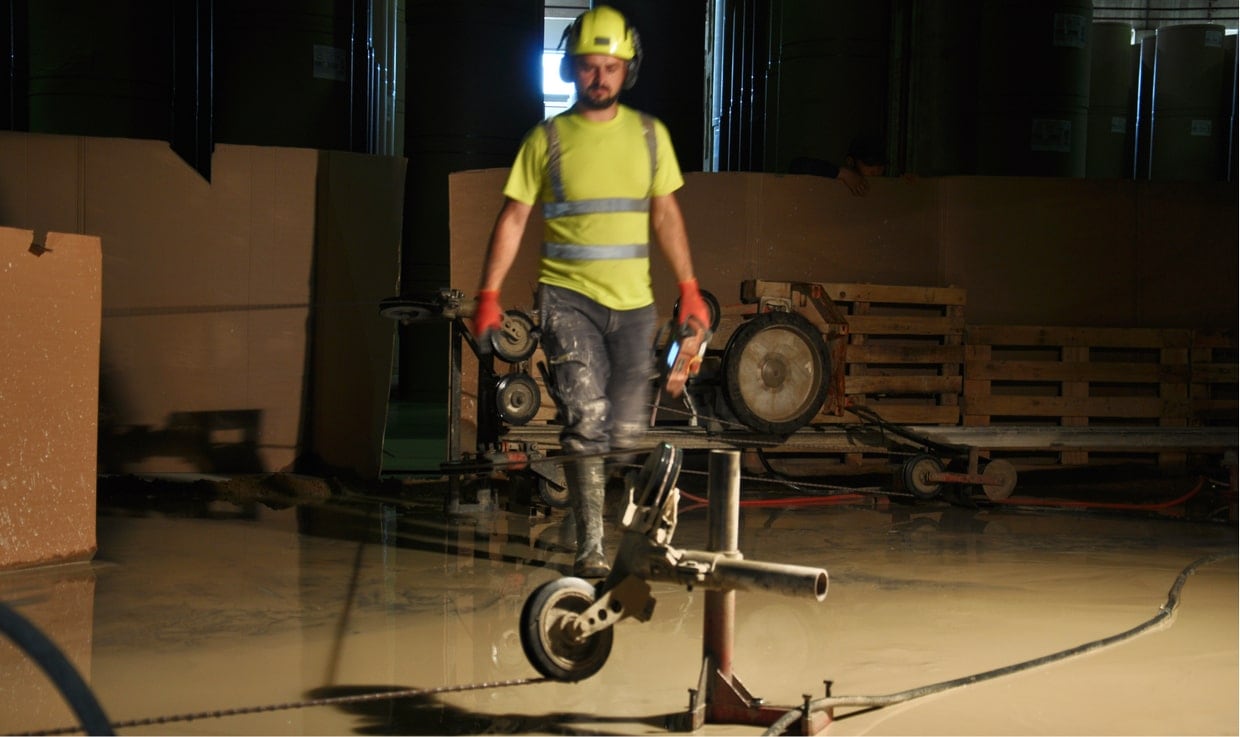 Шлам и воду, образовавшиеся в большом количестве в процессе канатной резки бетона на всём протяжении работ, убирали промышленными пылесосами.