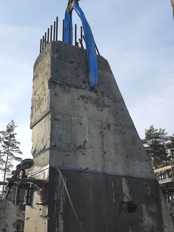 Для строповки фрагментов в каждой бетонной опоре выполнено одно отверстие Ф152мм. Вес срезаемой части опор 6-7 тонн.